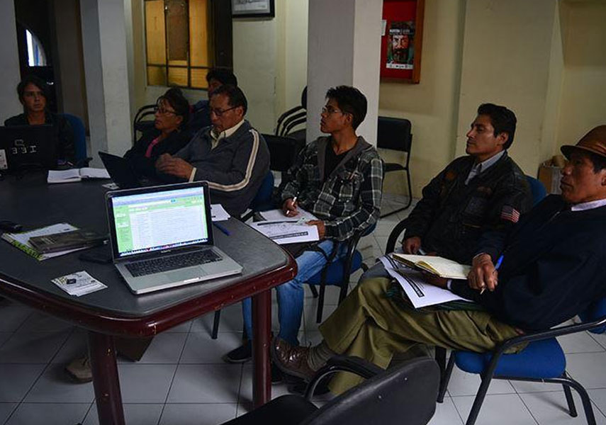 El 14 de mayo de 2015 el equipo OCARU se traslada a la sede de la FEUNASSC (Federación Única Nacional de afiliados al Seguro Social Campesino) en Quito para realizar un taller sobre los nudos críticos de Ley de Tierras y Territorios Ancestrales.